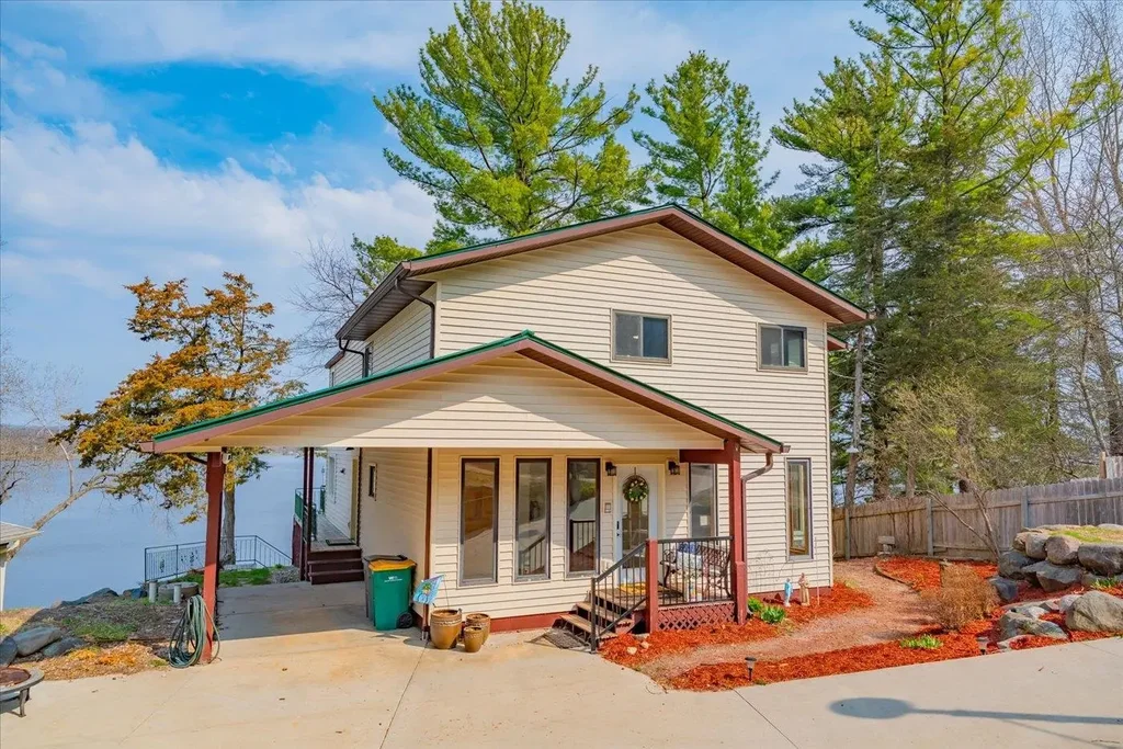 Welcome to paradise! This 2 story home is perched on top of the bluff w/ views you only see in magazines. Home features 3 bedrooms, 3 baths, w/ just under 3500 sq feet of finished living space. Main level features open concept complete w/ expansive kitchen, walk in pantry, dining, great room w/ soaring wood ceilings & a wall of windows overlooking Lake Wi. Upper level master suite w/ walk in closet, spa like bath, & loft w/ views of the Baraboo Bluffs, Devils Head, & the Ferry. Loft could easily be converted to 4th bedroom. LL finished w/ living room, full bath, bedroom, & 2nd laundry room. Choose between the screened in porch, deck, or dock to sit back, relax, & watch the sun rise/set. Incredible views of the Baraboo Bluffs, Devil's Head, the Ferry and breathtaking Sunsets nightly