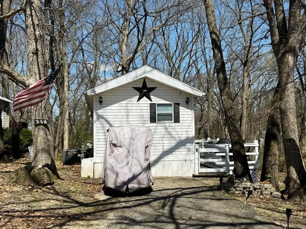 This Unique Vacation Retreat in Rock River Leisure Estates offers 2 bedrooms and a bunk room! The large separate Family room is awesome for additional guests or Movie night for the entire family. Nice location in the park on an awesome lot with private firepit and spacious deck for outdoor dining. Includes full size appliances , most furniture and all outdoor furnitue! Extra space for guest parking and storage shed. Thermopane windows and Thermoline hydrant. Enjoy all the amenities the park offers - 2 swimming pools, fishing pond, tennis courts, horse shoes, playground, game room and more! Pier spots and boat storage are available! The park is open all year but Year round living is not allowed in Park models.