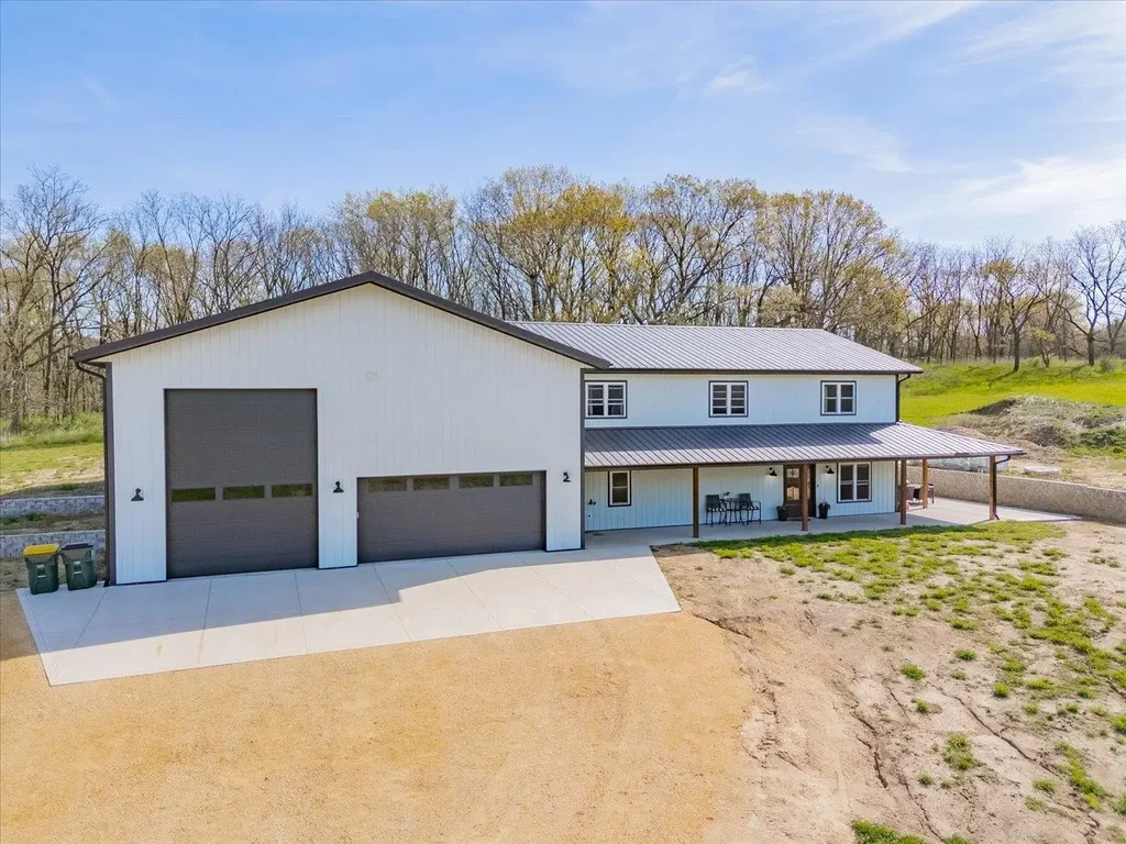 Beautiful custom home in Iowa County nestled on 7+ acres. This 2022 custom built, 3,000sq. ft. home offers a private oasis with country views and modern amenities. Featuring an open-concept ML with vaulted ceilings in the living room, large office, quartz countertops, a large island and hidden spacious pantry in the kitchen. The generous primary suite includes a soaking tub and walkout to the back patio with hot tub, and walk-in closet with laundry. The upper level includes loft area overlooking living space, 4 spacious bedrooms, 2 additional bathrooms and another laundry space. A massive 40'x 55' garage is attached to the home that includes in floor radiant heat and zoned heating. Don't miss this rare opportunity for country living just minutes from town.