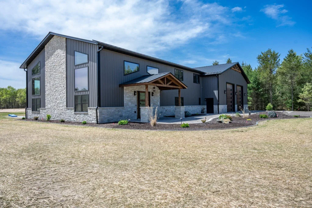 Rare opportunity to own this custom-built barndominium situated on 6.63 acres and on its own private pond! Stunning great room with vaulted ceilings, floor to ceiling fireplace and windows, gorgeous chef's kitchen with quartz countertops and walk-in pantry. Primary suite with stunning ensuite bathroom, plus additional main-floor suite. Upper-level hosts rec room, additional bedrooms and office. Attached 64x48 heated shop to store your boat, UTV, snowmobiles. 1/2 bath in shop along with amazing bar area. Outdoor space w/gas firepit, pergola and ready for your outdoor bar or kitchen. 0.5 acre pond with sandy beach and irrigation system for newly seeded lawn. Just around the corner from Castle Rock Lake, NO HOA, schedule a showing today!