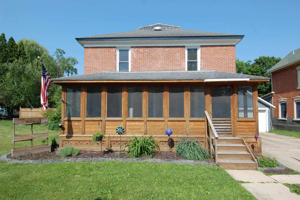 Nestled on a quiet, tree-lined street within walking distance from all of Spring Green amenities, this beautifully maintained single family brick home offers comfort, convenience, & character. Designed for both relaxation and entertaining, it features a spacious screened porch and expansive deck perfect for enjoying peaceful mornings or hosting gatherings. Natural light fills the updated kitchen creating a warm and inviting atmosphere. Game room in the basement ideal for extra living space. Two car garage with dedicated workshop and golf cart storage. Home has a whole house air cleaner for enhanced air quality. This home offers ideal blend of modern living and small town charm.