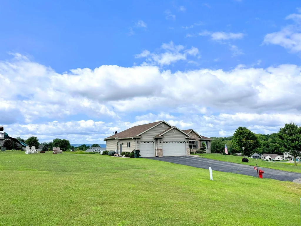 Solid executive home in a country setting with municipal water, sewer and natural gas. Incredible amount of square footage with well appointed areas for entertaining. Master suite with whipool tub and walk in closet on one side of the home and the other 2 bedrooms and bath on the other. Large windows for natural light to filter throughout the home. Downstairs offers a huge entertaining area with wet bar, in floor heat, full sized windows and walk out door. Nice area for private office or 5th non-conforming bedroom. Established landscaping with great curb appeal. An added perk is the extra lot that comes with it and the 3 stall attached heated garage with installed electric vehicle charging stations. Quality throughout the home with brick and vinyl exterior. Back up generator included.