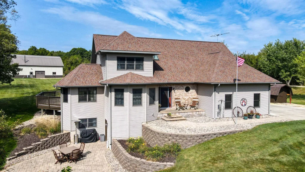 Step inside this impressive custom built 3-bedroom, 3.5 bath home, designed for both comfort and entertaining. The open-concept living area features vaulted ceilings, a formal dining space, and a seamless flow to the kitchen and sun-filled breakfast nook. The expansive primary suite presents a jetted tub, generous layout, and a private walk out to the gorgeous stone patio. Upstairs, you'll find an open loft area, perfect for a home office, reading nook and more. Downstairs, enjoy a large family room complete with a wet bar. Multiple outdoor seating areas create an inviting space to relax or host surrounded by a beautifully landscaped yard and 8.08 acres. Remarkable 40X60 outbuilding offering endless possibilities. Easy commute with Hwy 18/151 just minutes away. It's all here, Welcome Home!