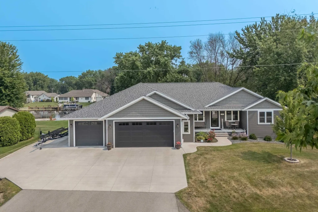 Built in 2020, this beautifully designed split-bedroom ranch sits along the scenic channel, offering the perfect blend of modern comfort and waterfront charm. Step inside to an open-concept layout with a cozy gas fireplace and seamless flow from the living area to the dining and kitchen spaces. The primary suite is a true retreat, featuring a tiled walk-in shower, double vanity, and spacious walk-in closet. Enjoy the convenience of main-floor laundry. The lower level offers future expansion potential with an egress window, plumbing stubbed for a bathroom, and direct access from the garage. Outdoor amenities include a large deck, patio, and your own boat dock with lift. An impressive 4 car garage is insulated and heated. Energy star certified! Live the waterfront lifestyle.