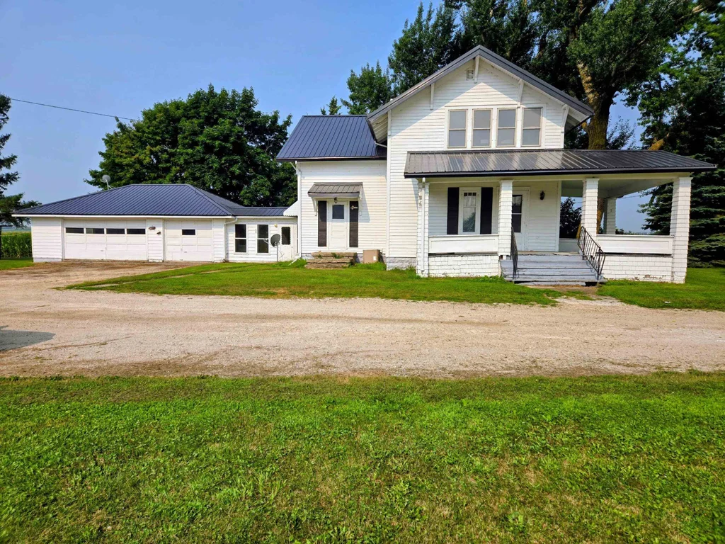 Country Living at it's Finest!! The farm house needs some TLC but the natural woodwork, hardwood floors, and old time charm are still intact. The formal dining and living room areas have an open concept. There is a main level bedroom, full bath and laundry. The grand staircase leads to 3 spacious bedrooms, (One is the maids/butlers room that has a staircase that leads directly to the kitchen) a 3 seasons room that has a closet, and a room that was possibly designed as a nursery. The breezeway leads to an oversized 3 car garage. The barn is attached to a large shed, there is a separate machine shed, and another shed may have been used as a chicken coop. Sit on the large covered front porch and enjoy the country views and get some fresh air.