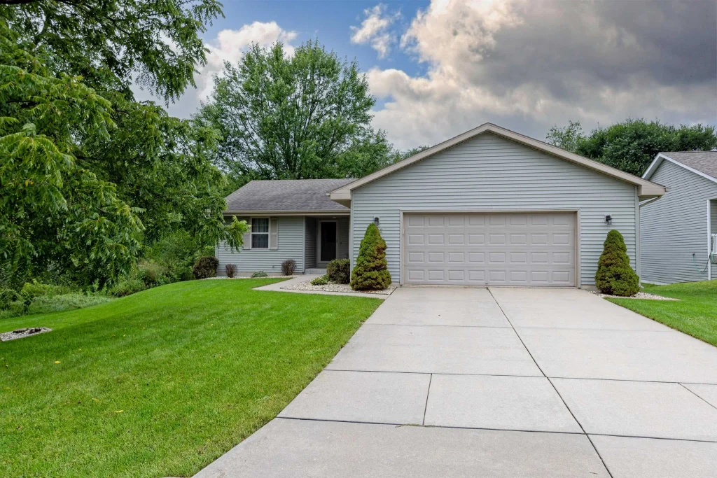 Affordable 4-Bedroom, 3-Bath Ranch Home. This well-cared-for, one-owner ranch is just 12 years old and sits on a quiet, one-block long street with no backyard neighbors. Enjoy peaceful mornings on the spacious deck while listening to the birds or spotting deer, turkey, pheasants, and even the occasional fox. Or take your morning walk through the woods on the mowed trails. Inside, the split-bedroom floor plan features a cathedral ceiling in the great room, birch cabinetry, and hardwood floors in the kitchen and dining areas. The primary suite includes a walk-in closet and full bath. Head downstairs to the exposed lower level which offers a spacious family room—ideal for entertaining or movie nights—along with a fourth bedroom and third bath, perfect for guests or extended family visits.