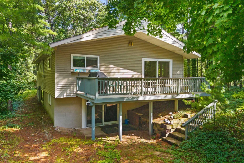 KUSEL LAKE Waterfront Home! A classic lake home in a private wooded setting with an enviable 115 ft of south facing, sandy beach, and crystal clear frontage! This charmer has been revitalized from top to bottom. Light and bright open concept with three bedrooms on the main level, two bonus rooms plus rec room and walk out in LL. Remodel in 2021 incl finishing the basement, furnace, A/C, softener, wtr heater, windows, attic insulation, kitchen (beautiful!), bathrooms, roof, 6" well, and flooring! Spacious lakeside deck and cozy firepit overlooking the water, plus a rustic boathouse and shed. Major furniture and furnishings stay. A wonderful home on a special lake! Awesome!