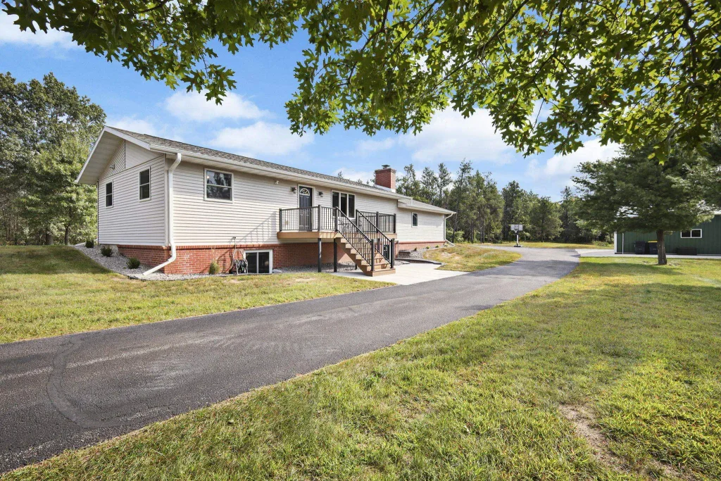 Stunning 7-bedroom retreat on 6.5 wooded acres, just minutes from Castle Rock Lake, offering the perfect blend of tranquility and convenience between Mauston and Necedah. Enjoy the spacious sun room off the kitchen and wood burning fireplace for those cozy nights in the living room. 30x30 pole shed with concrete floor, ideal for toy storage or convert to a game room! The home has been completely updated with all new flooring throughout, fresh paint in entire house, and Trex decks- front deck and large deck out back for entertaining in the backyard with fire pit just steps from the deck. Also features new furnace, AC unit, and water heater. No HOA! Whether a full-time residence, vacation escape, or investment property (Airbnb/VRBO), this home is ready to impress. Furnishings negotiable!