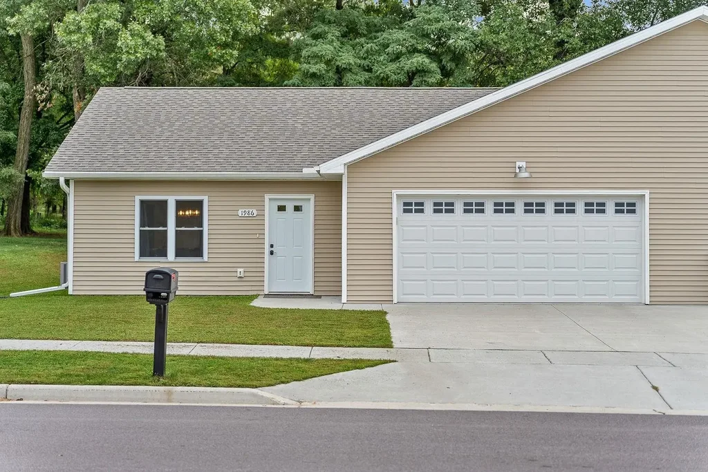 Less than 2 years old, this 1/2 duplex is designed with simplicity and style in mind all on one level with zero steps for effortless everyday living. Perfect for those looking to downsize or enjoy a low-maintenance lifestyle, this home features 2 bedrooms and 2 full bathrooms. Inside, you’ll find an open concept connecting the kitchen, dining, and living areas — ideal for relaxed living and easy entertaining. The kitchen is equipped with stainless steel appliances, a center island, and modern finishes throughout. The primary suite offers privacy and comfort with a walk-in closet and attached bath. Energy-efficient upgrades include LED lighting and a tankless water heater. A finished two-car garage and private backyard patio