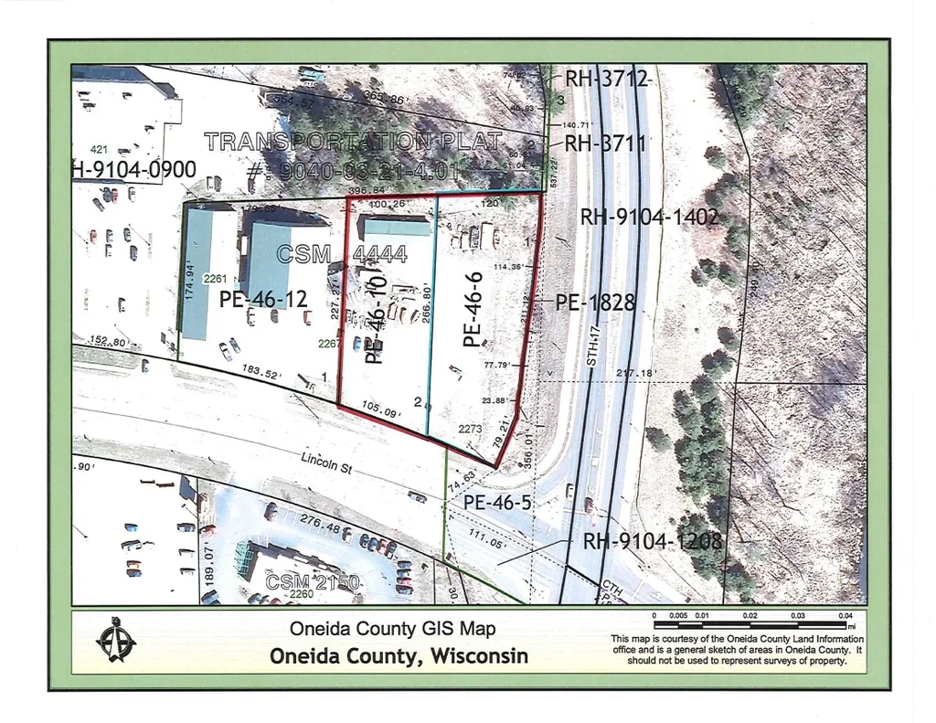 Prime corner lot location with light at intersection of State Hwy 17 and Lincoln Street in Rhinelander! Your Future business could go here on these 2 parcels with combined acreage of 1.26 acres. This parcel is zoned general use with 190 feet of frontage on Lincoln St and 250 feet on Hwy 17. Easy annexation to the city for sewer and water improvements. Seller is willing to consider a build to suit and a ground lease for the right tenant. Seller’s preference is a ground lease.