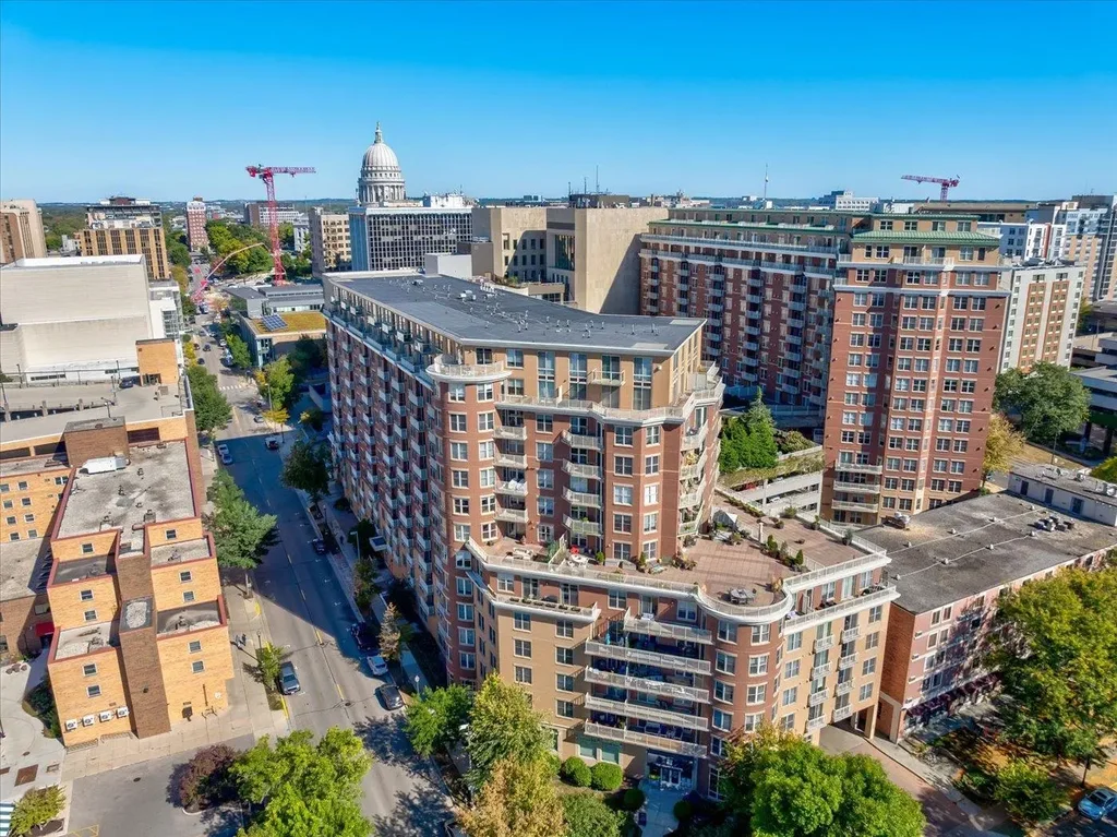 Desirable end unit condo with wraparound southwest views of the skyline and Lake Monona in the heart of downtown Madison. This bright open-concept home enjoys abundant natural light. The spacious kitchen features SS appliances, a large island with breakfast bar & dining area. The primary suite includes a generous walk-in closet and bathroom with heated floors. A full laundry room with cabinetry, utility sink, and extra storage adds rare convenience. Building amenities include a fitness center and a terrace with community grills & fire pits, ideal for relaxing with friends. Assigned parking & storage are located together on the 5th floor for added convenience. Just a five-minute walk to the Capitol, Overture Center, Kohl Center, and downtown’s best restaurants & cafes.
