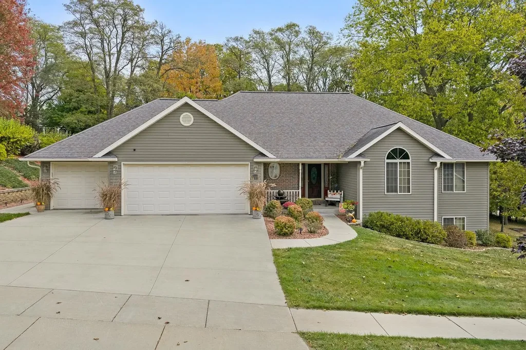 This beautifully maintained 5-bedroom, 3.5-bath ranch offers comfort, space, & convenience in a prime location close to the hospital & shopping amenities. Enjoy cooking & entertaining in the kitchen featuring an island, quartz countertops, & stainless steel appliances. The sunroom, filled with natural light, opens to a private patio & partially wooded backyard—complete with a storage shed. The main floor boasts living room with vaulted ceiling & gas fireplace, laundry room, & a spacious primary suite with a walk-in closet & private bath. 3 bedrooms are located on the main level, with 2 additional bedrooms & a full bath in the finished walkout lower level, which also includes a warm & inviting family room with a second gas fireplace & large storage area. 3-car attached garage. A must see!