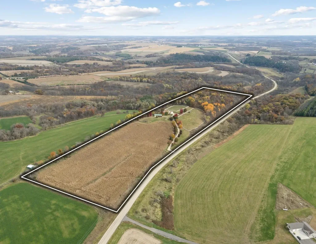 35.50± acres at 8370 County Road A, Hollandale, WI—a premier country estate offering privacy, functionality, and comfort just minutes from Mount Horeb and New Glarus. The 2000-built custom ranch home features 2,250 sq ft with maple floors, a wood-burning fireplace, and a remodeled kitchen with quartz countertops, hickory cabinets, and stainless appliances. The luxurious primary suite includes a two-sided fireplace, soaking tub, tile shower, and dual walk-in closets. Updates include a new roof (2019), furnace, A/C, and bath remodel (2018). A 62’x36’ outbuilding offers 4 stalls, tack room, office, and fenced paddocks with water. The land includes 19 wooded acres with trails and 9.69 tillable acres. Enjoy a heated 3-car garage, pool, hot tub, and fenced backyard.