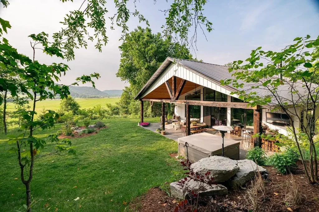 Prepare to be inspired and enjoy a more peaceful life in a magnificent home! This custom designed home is tucked into a private 5.0 acre wooded lot and the location just happens to lie in one of the most beautiful valleys in the Driftless area! The house was built in 2024 featuring ICF construction, high ceilings throughout and spacious living areas with customized features in every room. The kitchen and dining areas will be hard to compare under a 17' vaulted ceiling and an impressive wall of premium windows filling the room with an abundance of natural light. Relax by the Renaissance wood burning fireplace, or entertain on the covered patio area with expansive views. The 10x12 storage shed and 24x36 shop provide additional storage, plus a parking area for a camper or boat as well!